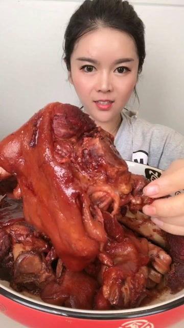 在这段视频中,刘大瓜一边吃猪肘子,一边与观众互动,搞笑的言语和夸张的表情让人忍俊不禁。